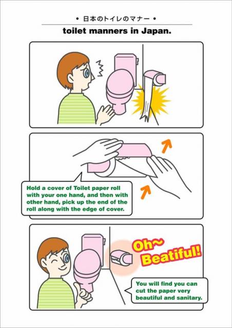 外国のお客様が、トイレットペーパーの紙を手でちぎるので、ダラーンなっていて、後から入った日本人のお客様からのクレームがあるからということで、部屋の案内と一緒にこれを置いておくというもの。