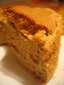 初めてにしてはまぁまぁかな。少し萎んだけど、ふわふわ感あっておいしいかったです。夜更けに試食しちゃいかんと思いつつ、少し食べちゃいました。