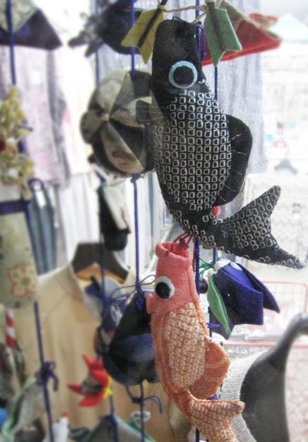 店のショーウインドーにあった5月の節句の飾りもの。