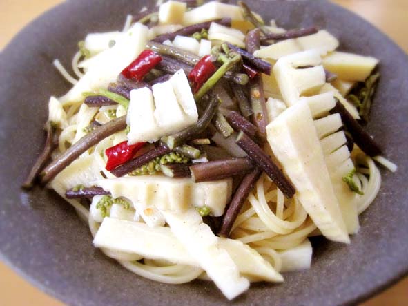 筍とワラビのペペロンチーノ