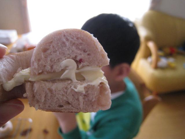 自作のベーグルを食べてご満悦〜!