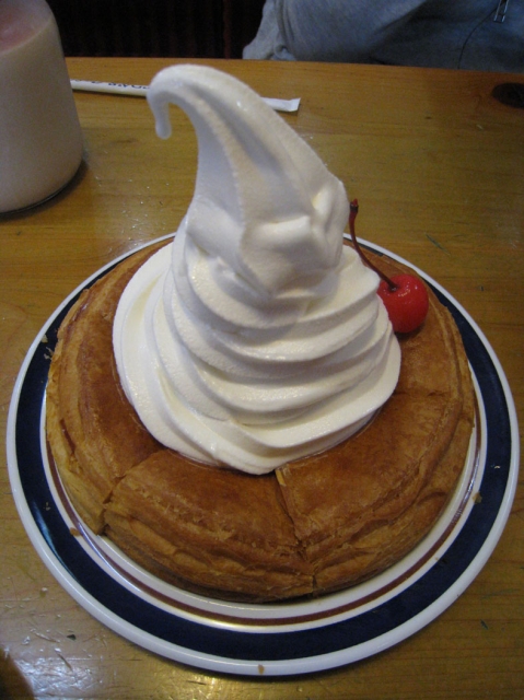 シロノワールは温かいデニッシュの上にソフトクリームがのってて、
